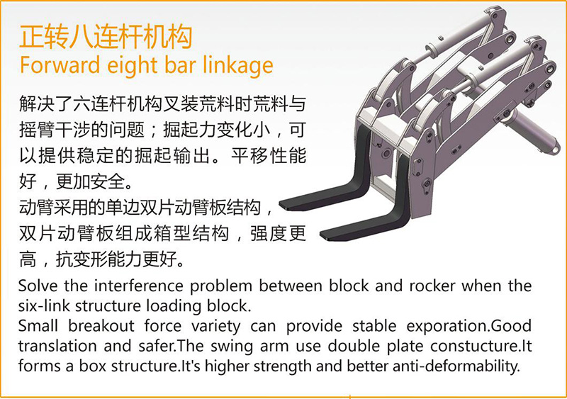 wheel loader WSM988T48 The driver A point is the height of 700mm away from the seat (normal sitting position). When the fork is horizontal, we can see the fork and fork tip fork into 300mm way.In the lifting process, the driver can see the tip and fork, it is safe to work. wheel loader WSM988T48